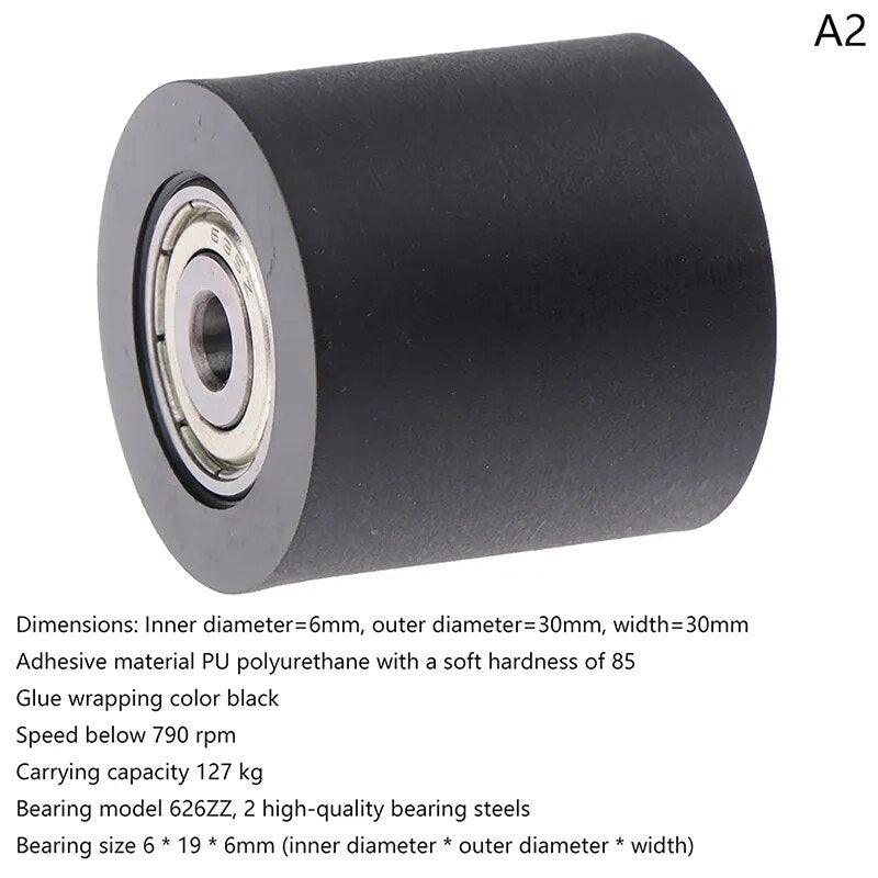 Silent PU Guide Wheel with Double Bearings – 30mm Diameter, 5–10mm Bore | Furniture & Track Roller