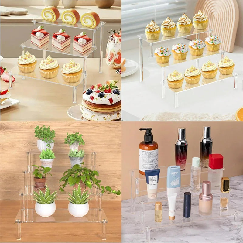 Clear Acrylic Display Riser - 1 to 5 Tier Organizer Stand for Perfume, Jewelry, Cosmetics & Retail