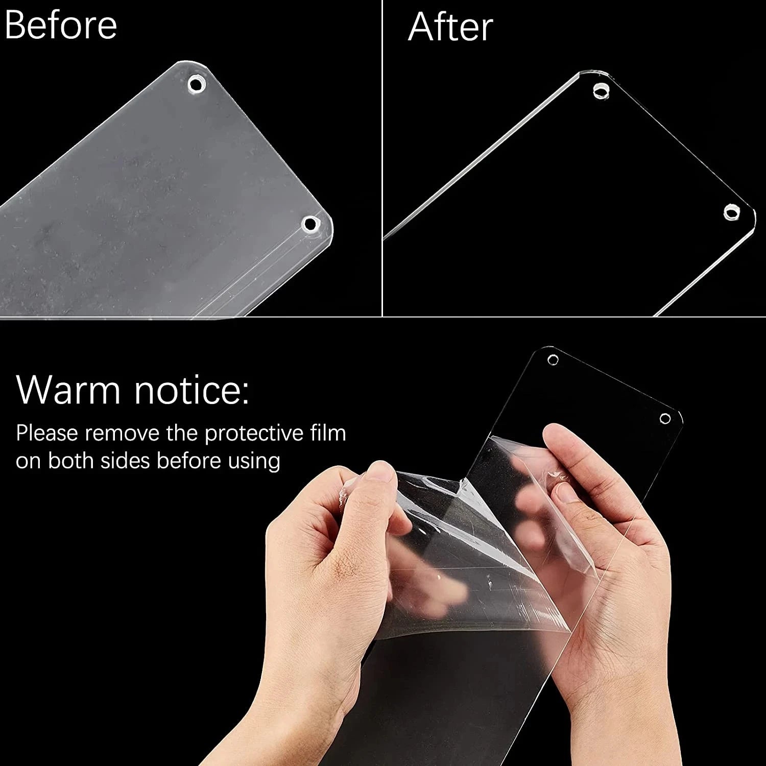 We use virgin PMMA (not recycled plastic) with 92% light transmission for crystal clarity. Our 3mm thickness is 50% thicker than standard marketplace products, providing superior stability and professional appearance.