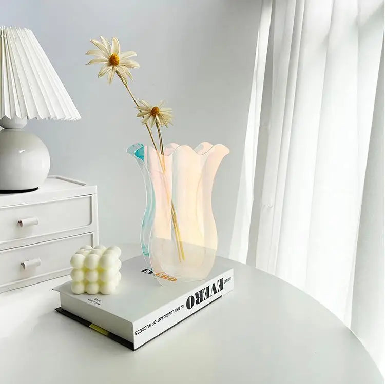 Modern Geometric Acrylic Vase - Clear Wave Design Flower Holder for Home Decor